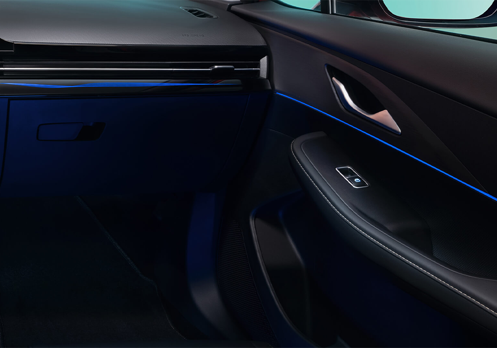 Luz ambiental multicolor (64 colores) en puertas delanteras, tablero y portavasos. Disponible en versión 1.5T Unlimited.