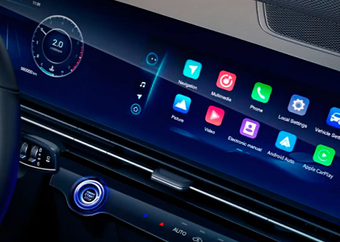 El panel de control y el complejo multimedia se presentan en forma de pantallas LCD duales de 10.25 pulgadas con resolución HD y soporte para las funciones de Android AutoTM y Apple CarPlay® con conectividad inalámbrica.